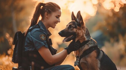 Portrait of a female police officer with police dog