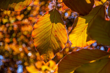 The Copper beech tree (Fagus sylvatica purpurea) leaves isolated,close up,macro,detail.