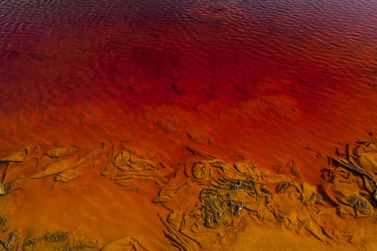 Glinting liquid metal surface reflecting copper-gold highlights and veined gloss