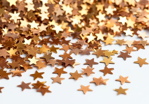 Scattering metallic gold and copper confetti creating warm shimmering bokeh backdrop