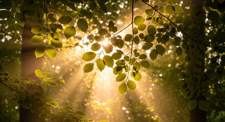 Majestic tree in sunlit forest clearing with mossy ground, garden of eden concept