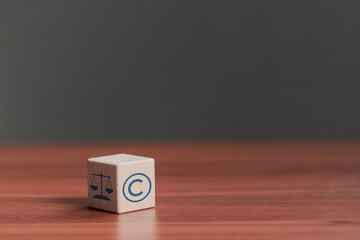 Copyright legal concept, wooden block with copyright and legal icon for author rights and patented intellectual property. copyleft trademark license, Copyright or patent.