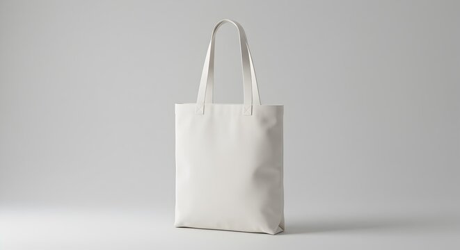 White Blank Canvas Tote Bag Mockup Isolated on Clean Light Grey Background