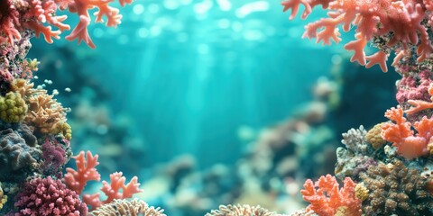 Sunny coral reef with vibrant sea life and resplendent sunrays