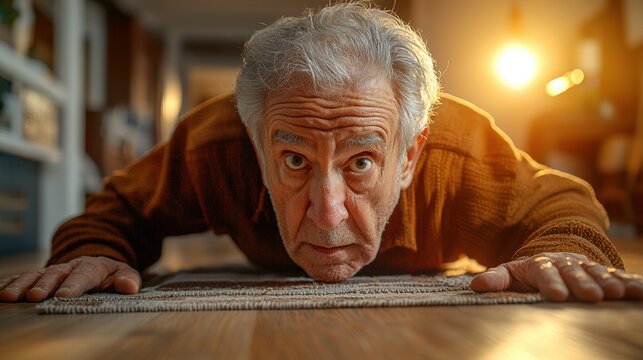 Elderly Man Engaging in Strength Training at Home