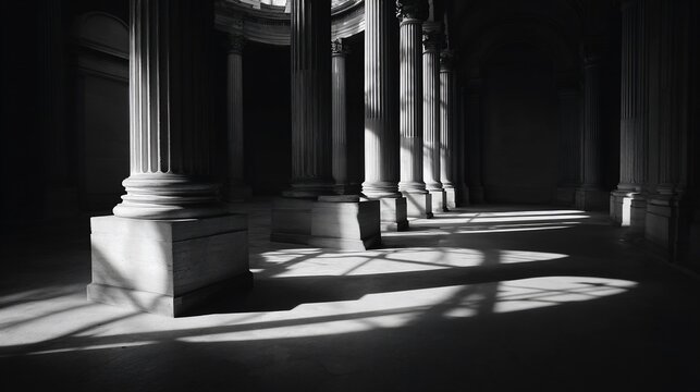 Sunlit pillars in a dark colonnade