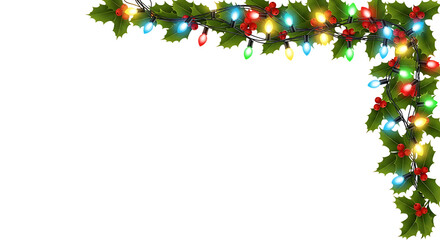 Festive christmas corner decorations with red baubles and greenery on a black background