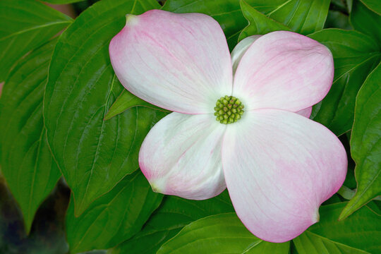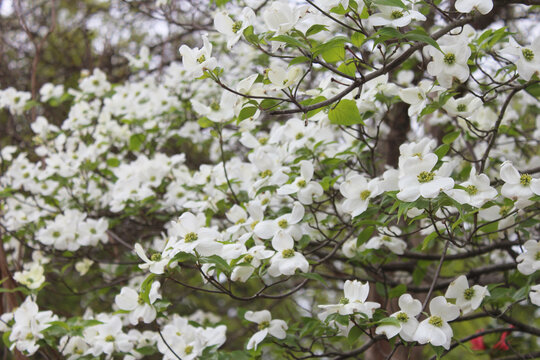 Closeup of beautiful Cornus florida flowers outdoors during daylight