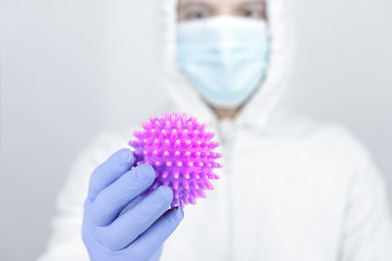 scientist in laboratory with virus representation