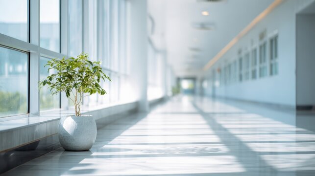 Living green wall casting diagonal sunlight shadows in minimalist atrium with glass facade