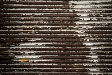 Metal aluminum silver corrugated stripe sheet wall background with texture horizontal lines. White or grey metal sheet
