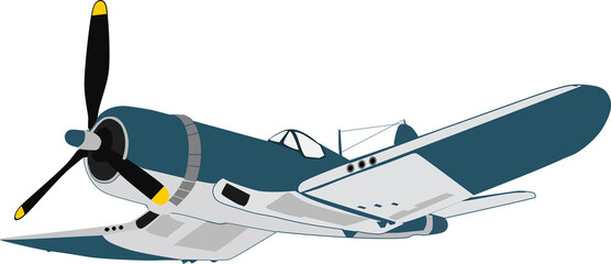 Vintage F4U corsair military aircraft, navy airplane vector illustration