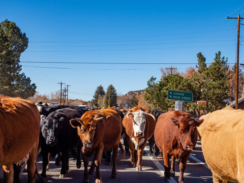 Cattle Drive on main road in Dolores near Cortez, Colorado, USA