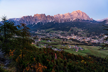 Scenic view of Cortina d'Ampezzo, located in the heart of the Dolomites in an alpine valley, Italy.
