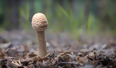 deadly cortinarius orellanus mushroom. Against the background of autumn foliage in the forest