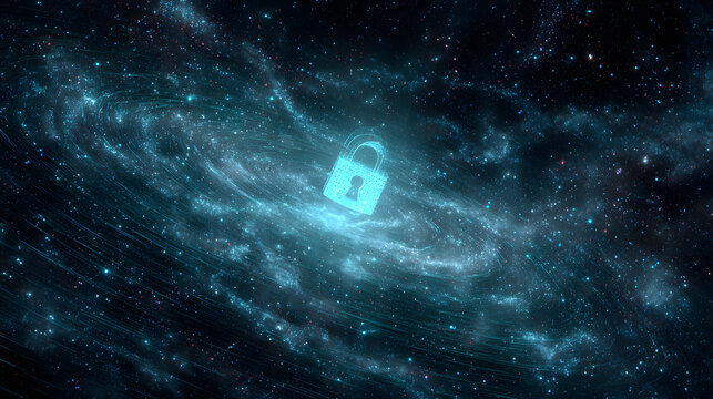 Futuristic cosmic visualization with data and technology elements