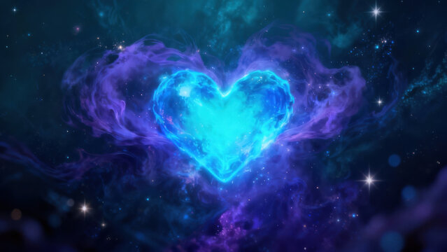 Luminous Heart Nebula in Deep Space with Cosmic Dust and Stars