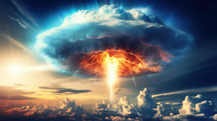 Dramatic cosmic explosion with glowing suglar dust and gas