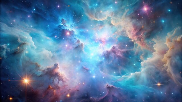 Softly glowing nebula in pastel blue and pink hues fills the vast expanse of space with an otherworldly beauty , abstract, cosmic