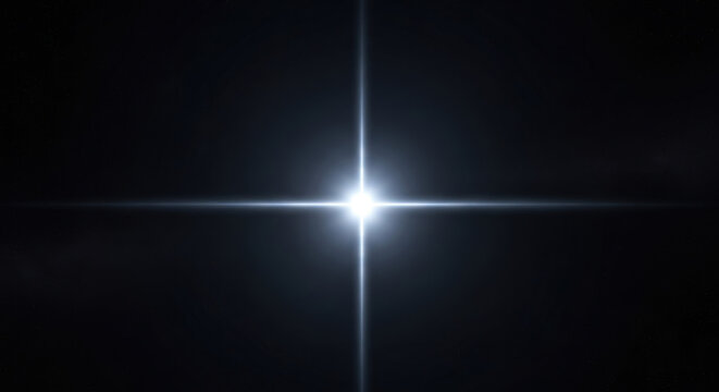 Bright blue starburst flare radiates from center on dark background. Light streaks and particles suggest cosmic or abstract energy. Shining glow emanates from bright light source.