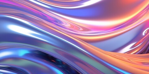 Holographic chrome gradient waves abstract background. Liquid surface, ripples, reflections. 3d render illustration.