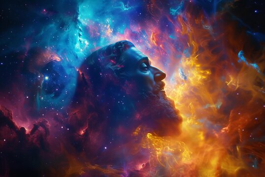 Jesus in a cosmic nebula Symbolizing the mysteries of creation and divine presence