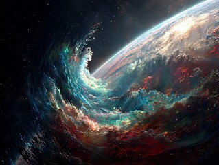 Dynamic energy burst universe digital artwork cosmic environment close-up view vibrant concept for visual impact