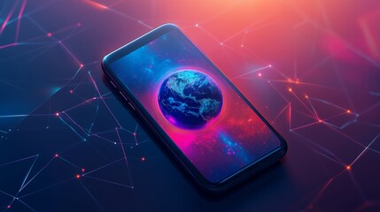 Exploring the future smartphone displaying earth in digital space modern digital art cosmic environment futuristic perspective