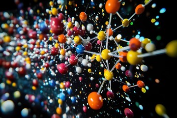 Abstract depiction of an atom with glowing orbits and colorful energy trails against a dark, cosmic backdrop