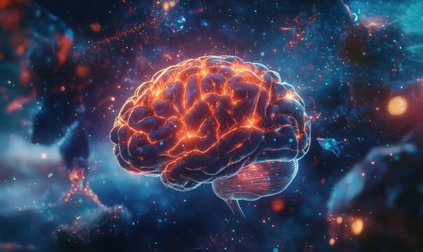 Glowing brain in cosmic space with neural energy.