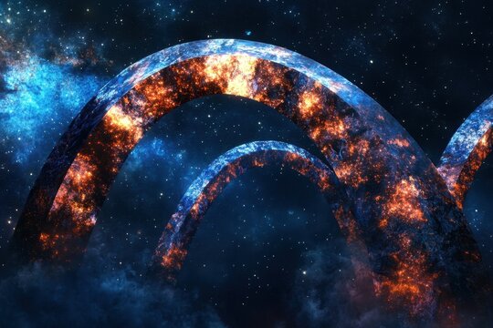 View from space: beautifully illuminated particle show displaying cosmic grandeur