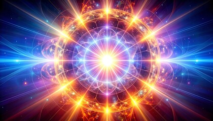 Vibrant, symmetrical energy sphere radiating light and cosmic patterns