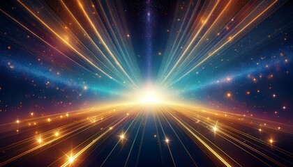 Abstract cosmic energy burst with radiant light streaks