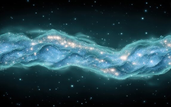 Ethereal teal nebular ribbon flowing through deep space with luminous stars