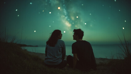 Ship sailing cosmic ocean under starry celestial sky