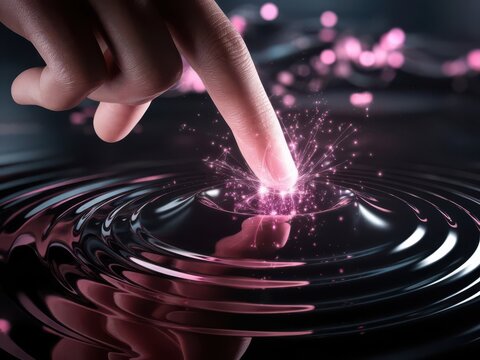 Finger initiates cosmic ripple effect with a touch of futuristic energy
