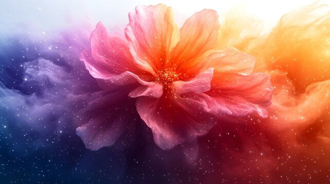 Vibrant Ethereal Flower Bloom with Dynamic Colorful Petals and Glowing Cosmic Particles
