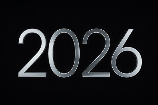 Sleek silver 2026 design against elegant black backdrop offers a stylish visual for new year celebrations, future milestones, or futuristic concepts