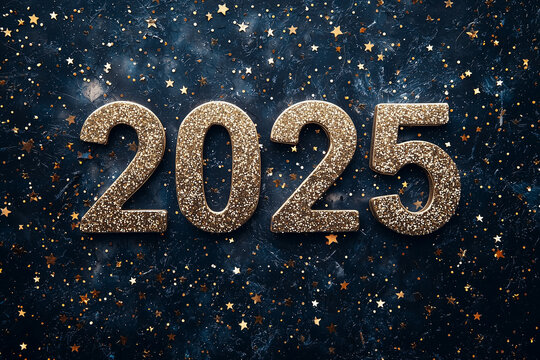 2025 golden number, Happy New Year, welcome 2025, the number "2025" with sparkles behind, people celebrating the new year