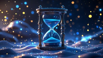 Ultra-detailed 3D hourglass floating in space with golden sand flowing upward, surreal time reversal concept with dramatic lighting and cosmic background.