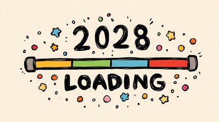 Colorful Loading Bar Design with Year 2028 Celebration Theme