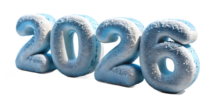Three dimensional metallic silver and grey 2026 text with happy new year celebration. isolated on white background, Vector
