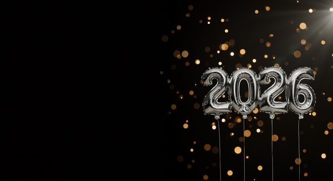 Sparkling 2026 New Year Celebration with Golden Bokeh Lights.