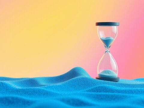 Vibrant hourglass, sand flowing, neon background. Time, deadline, urgency concept.
