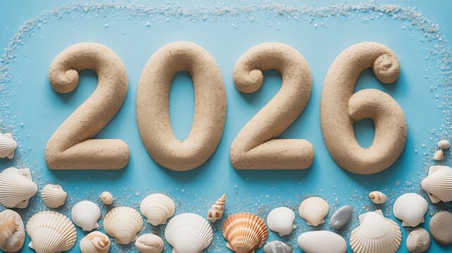 2026 Wooden Number Layout – Colorful Minimal New Year Concept on Natural Wood