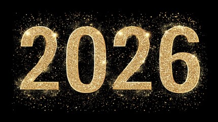 Glittering Gold 2026 Numbers with Sparkles and Shimmering Effect on Black Background for Celebratory Themes and New Year Festivities