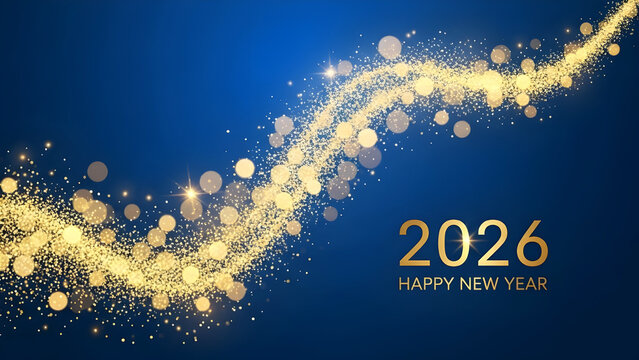 Elegant golden design prominently showcasing the festive greeting happy new year 2026 with sparkling texture and shimmering bokeh lights creating a luxurious and celebratory atmosphere for seasonal gr