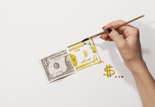 Counterfeiter printing dollar banknotes at table, closeup. Fake money concept