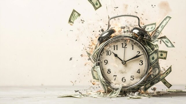 2025 New Year with clock counting down to midnight with defocused golden background and fireworks