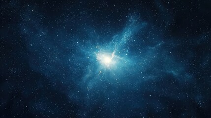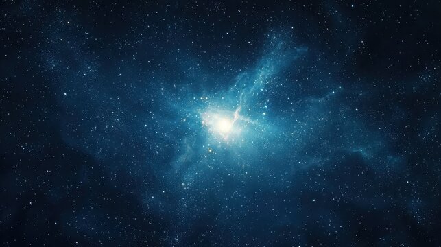A vast, dark blue expanse of space with a bright, glowing star at its center, surrounded by countless stars and nebulae, set against a backdrop of countless stars and nebulae,